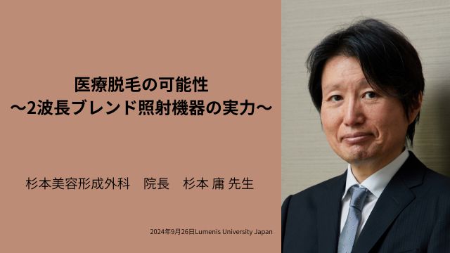 Hair RemovalProductsResource HubSeminar SummarySplendor XTreatmentsHair RemovalProductsResource HubSeminar SummarySplendor XTreatments医療脱毛の可能性~2波長ブレンド照射機器の実力~杉本美容形成外科 院長 杉本 庸 先生